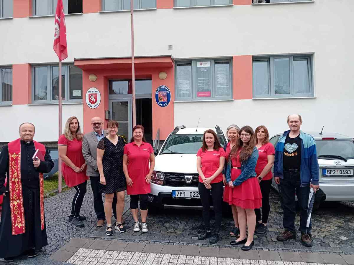 V Kolinci jsme společně prožili slavnostní okamžik, žehnání nového automobilu, který bude sloužit našim pracovníkům terénní služby Charity Sušice, středisko Kolinec. Tento vůz jim umožní bezpečně a spolehlivě docházet za seniory a nemocnými přímo do jejich domovů.